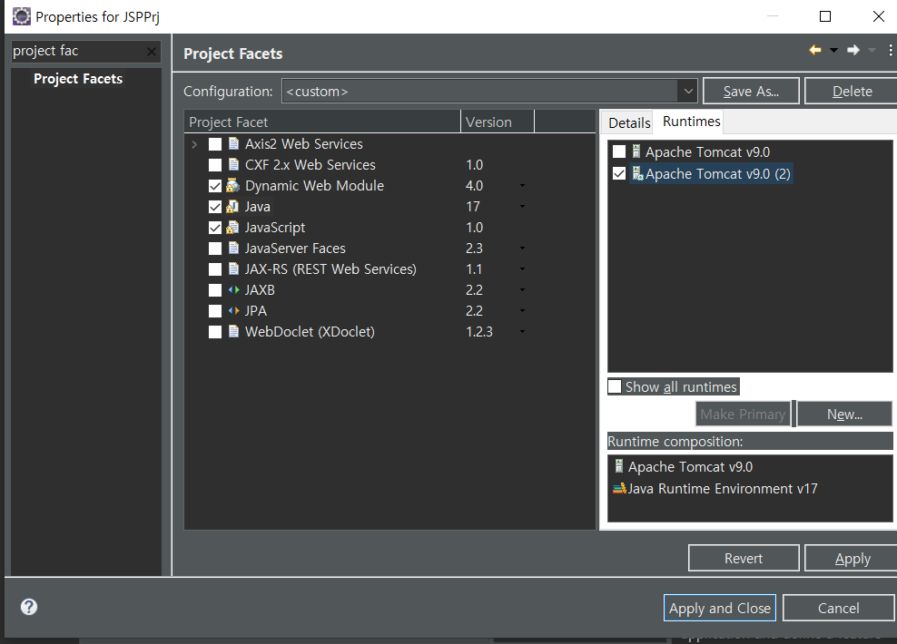 톰켓9버전 이클립스 웹프로젝트 생성후