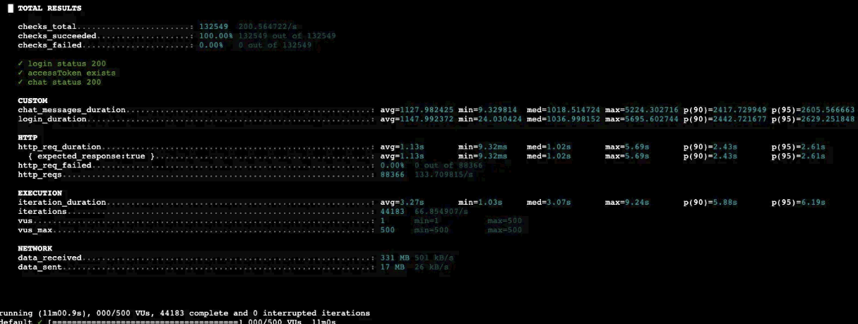 아쉽게도 p(95)<500' p(95)=2.6초로 평균 500ms 응답시간은 달성하지 못했습니다...